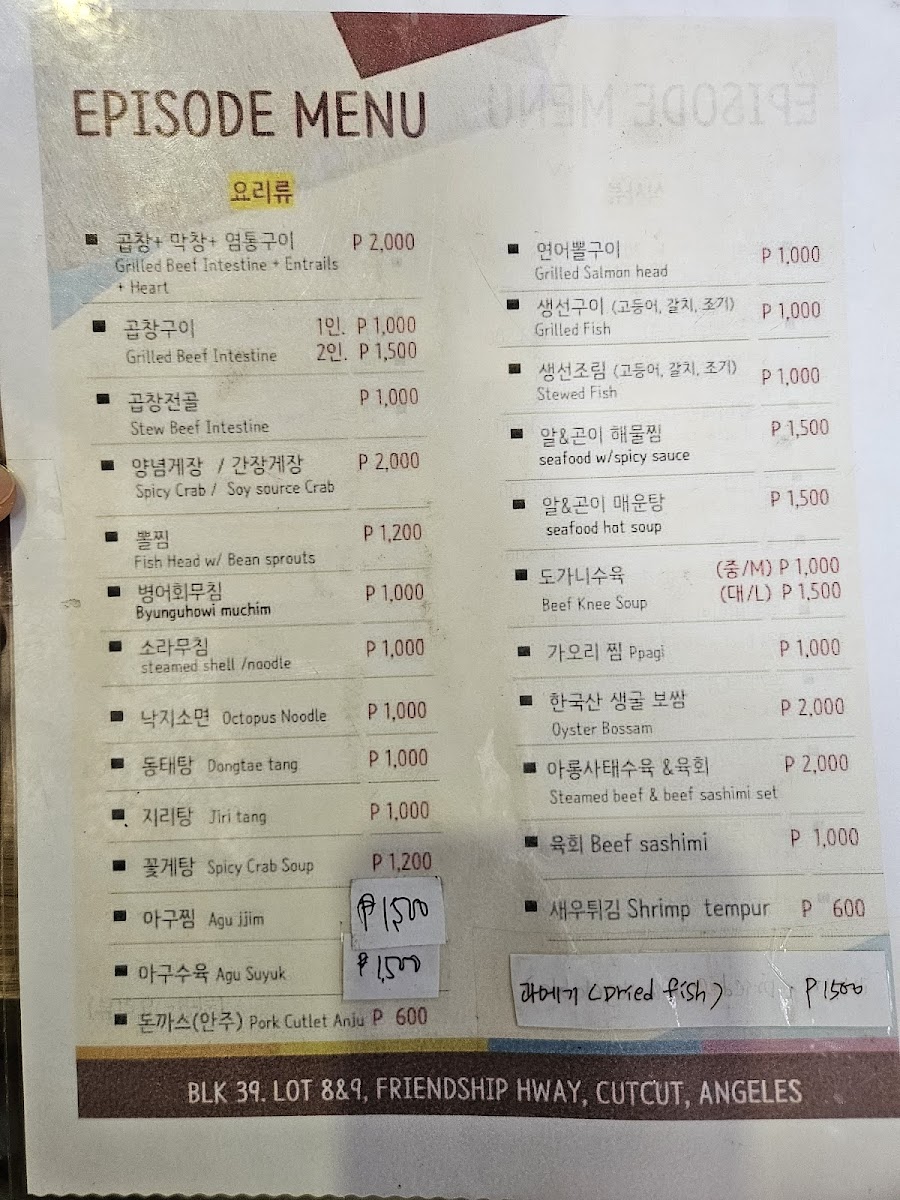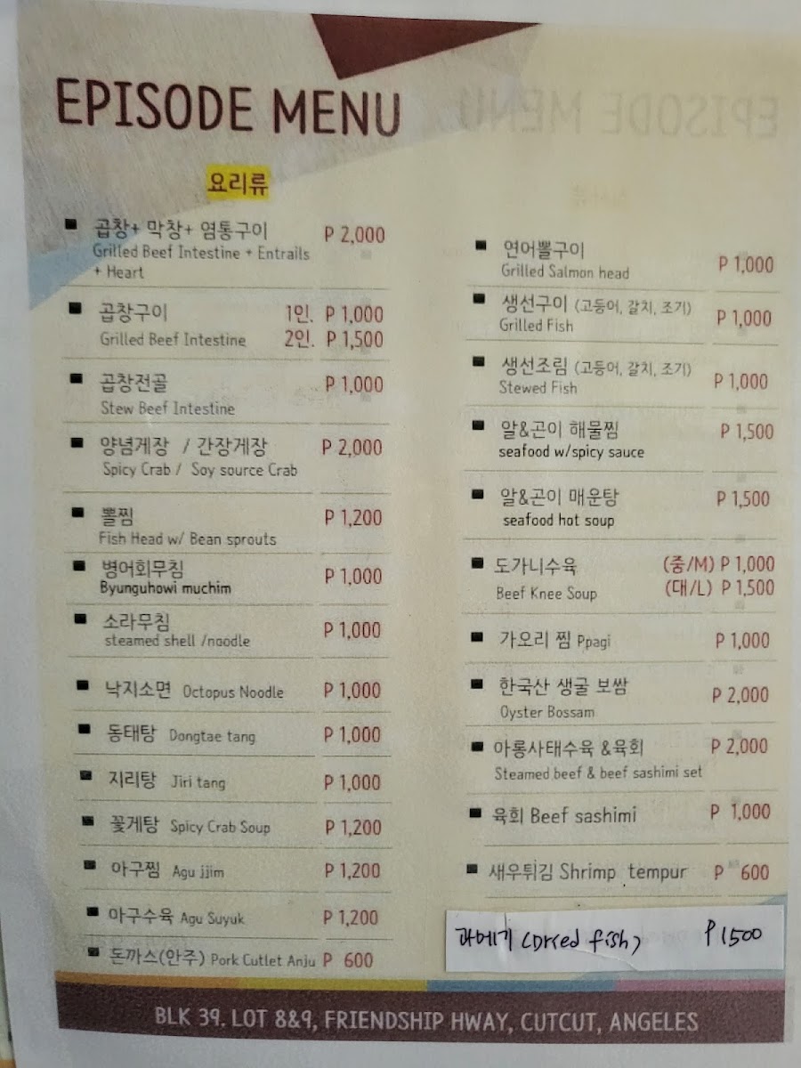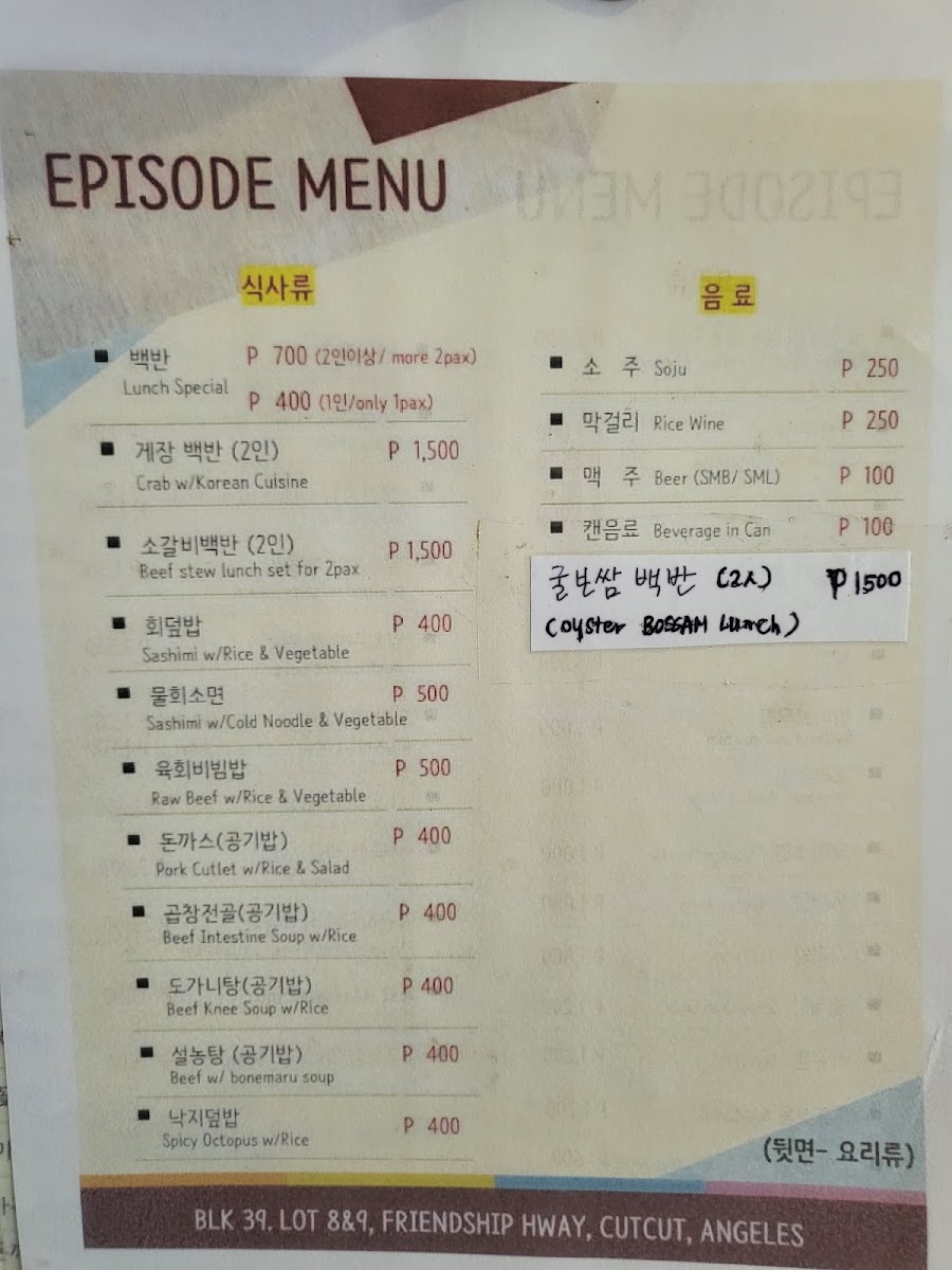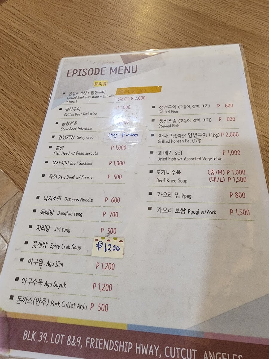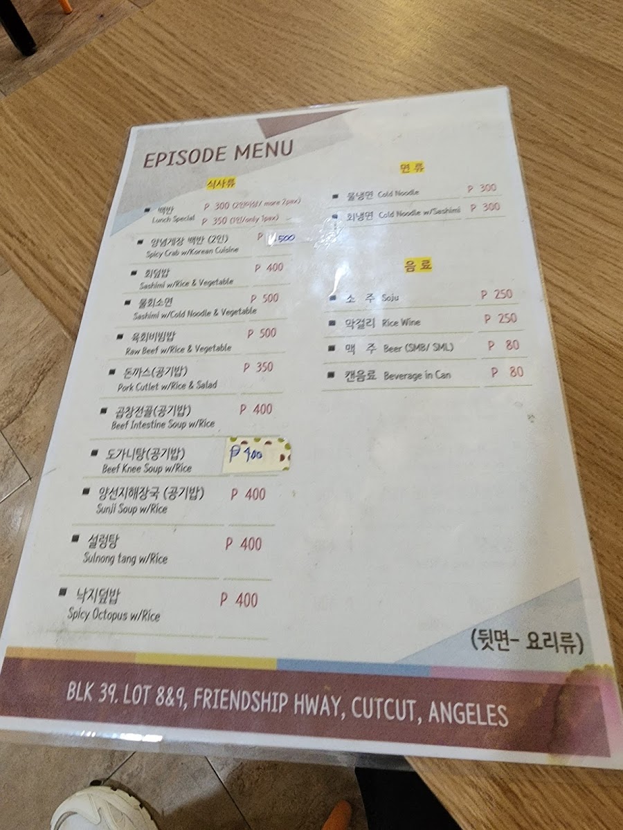 Episode resto / 에피소드 식당 Menu